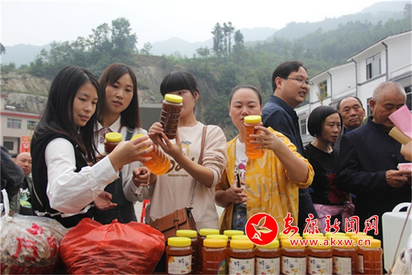 據(jù)悉,此次豐收節(jié)活動(dòng)以“文旅消費(fèi)助扶貧”為主題,共在東坡村文化中心廣場(chǎng)設(shè)置“山貨”及農(nóng)產(chǎn)品售賣展位近百個(gè)。據(jù)不完全統(tǒng)計(jì),活動(dòng)現(xiàn)場(chǎng)累計(jì)售出蜂蜜、酒、獼猴桃、菜籽油、干竹筍等“山貨”4000余斤,共計(jì)10萬余元。