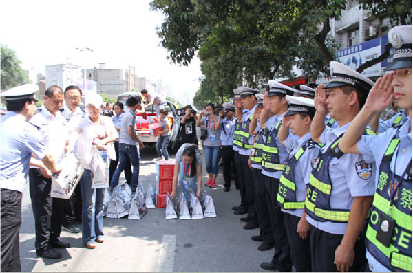 炎炎夏日 愛心企業(yè)為一線交警送清涼