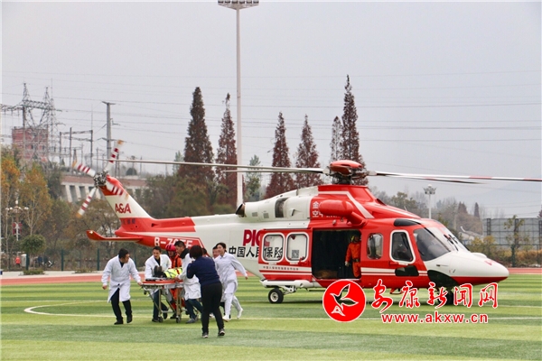安康新聞網(wǎng)訊(通訊員 楊欣)11月22日,由安康漢陰縣人民政府主辦,漢陰縣政府辦(應(yīng)急辦)、漢陰縣衛(wèi)計(jì)局、上海金匯通用航空股份有限公司(簡稱“金匯通航”)陜西分公司、漢陰縣人民醫(yī)院承辦,多個(gè)單位協(xié)辦,聯(lián)合開展“漢陰縣航空醫(yī)療應(yīng)急救援演練”活動(dòng)。漢陰縣人民醫(yī)院與金匯通航簽訂戰(zhàn)略合作框架協(xié)議并授牌。