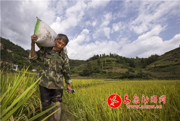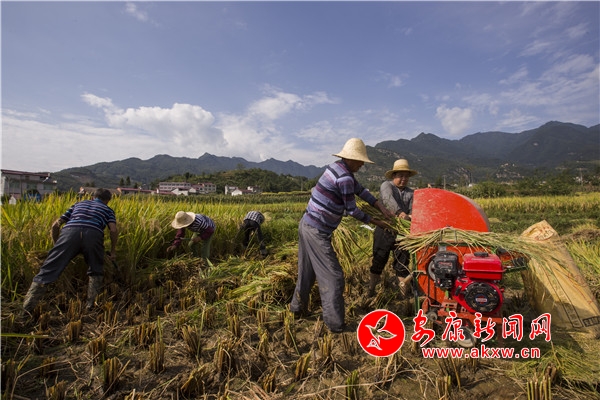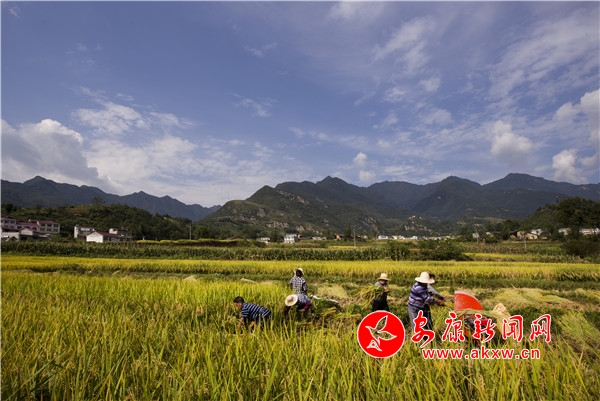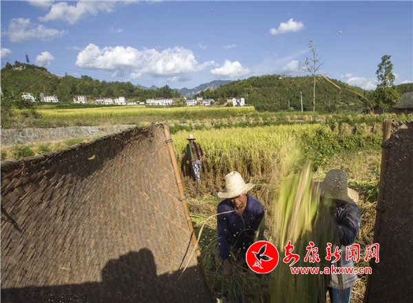 鳳堰古梯田位于漢陰縣漩渦鎮(zhèn),共有一萬兩千余畝,其中水稻種植面積三千余畝。今年九月以來,由于陰雨連綿,水稻收割受到影響,9月21日,天氣放晴,高高的藍天下,田野里的稻子笑彎了腰,農民齊刷刷在稻田里勞作,用自己勤勞的雙手詮釋又一個豐收年。(謝小利 攝)P8i安康新聞網(wǎng)