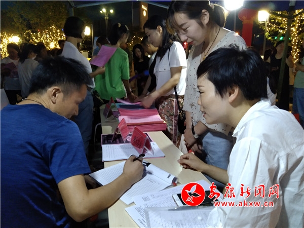 當(dāng)晚七點(diǎn),各展位攤前,人來人往,熱鬧非凡,有帶著孩子的婦女為丈夫咨詢的,有老人為自己的兒女詢問的,也有剛畢業(yè)的大學(xué)生來找合適崗位的,前來咨詢的絡(luò)繹不絕。家住城關(guān)鎮(zhèn)御景龍城的蔣友愛女士,早早地來到招聘現(xiàn)場,在展位攤前駐足、詢問招聘信息。據(jù)她介紹,今天在這里是想給女兒找一個合適的崗位,女兒去年大學(xué)畢業(yè),一直呆在西安,最近想回家在家附近找個工作。她表示,今天的崗位多,好多企業(yè)開出的工資待遇也還不錯,把招聘信息拿回去拍給女兒看,女兒能留在身邊就業(yè)掙錢,還能照顧家里,最好不過啦。