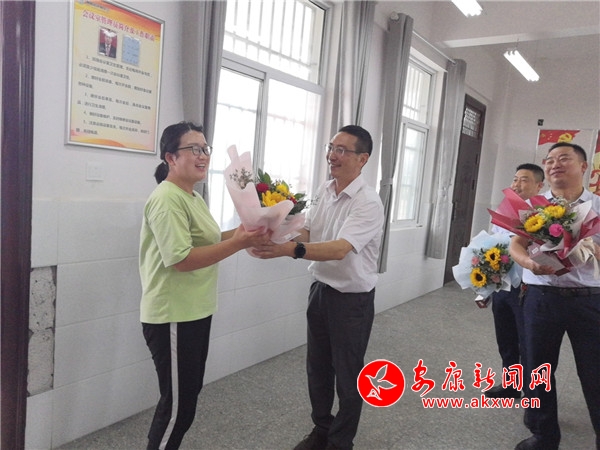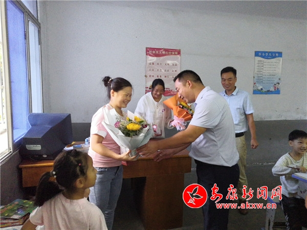 每到一所學(xué)校,校委會成員親手為教師們獻上鮮花、口杯等禮物,并與大家親切交談,詳細了解學(xué)校教學(xué)活動開展情況和教師們的生活、工作情況,同時向辛勤耕耘,默默付出的教師們致以崇高的敬意和真摯的祝福。