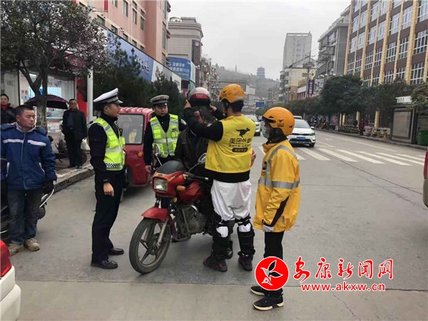 本網(wǎng)訊(通訊員 劉安正 蔣曉桂)為進(jìn)一步提升廣大電動自行車、摩托車騎乘人員的交通安全意識,督促外賣行業(yè)駕駛?cè)俗杂X養(yǎng)成佩戴安全頭盔的良好習(xí)慣,遏制冬季道路交通事故的發(fā)生,積極促進(jìn)社會各界人士共同關(guān)注交通安全。11月25日,漢陰縣公安局交警大隊城區(qū)中隊聯(lián)合美團(tuán)外賣在北城街、鳳凰廣場紅路燈路口設(shè)置了“一盔一帶”交通違法行為勸導(dǎo)點,大力開展“一盔一帶”警企聯(lián)合勸導(dǎo)日活動。