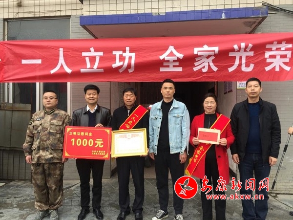 一行人先后來到城關鎮(zhèn)現(xiàn)役軍人劉家軍家中,為其送去“三等功”喜報和慰問金,對現(xiàn)役軍人劉家軍取得的榮譽表示祝賀,并詳細詢問了劉家軍家屬的生活狀況,感謝他們?yōu)椴筷牎樽鎳囵B(yǎng)了優(yōu)秀的軍事人才,并鼓勵他們要一如既往地支持軍人在部隊安心服役,支持國防建設,爭取再創(chuàng)佳績。劉家軍的父親接過這份承載著榮譽的喜報,深情地表示會繼續(xù)做好軍人的堅強后盾,鼓勵孩子在部隊安心服役、建功軍營。