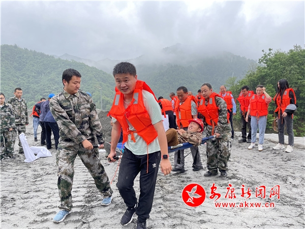 演練現(xiàn)場(chǎng),全副武裝的人員轉(zhuǎn)移組、道路搶險(xiǎn)組、醫(yī)療救助組隊(duì)伍魚貫而出展開行動(dòng),經(jīng)過3小時(shí)的協(xié)作配合,10余名被困村民被安全轉(zhuǎn)移,2名受傷群眾得到有效救治,3處道路滑坡點(diǎn)積地沙石被及時(shí)清理,水庫防洪壩被修繕加固,泄洪河道淤障得到全面疏通。