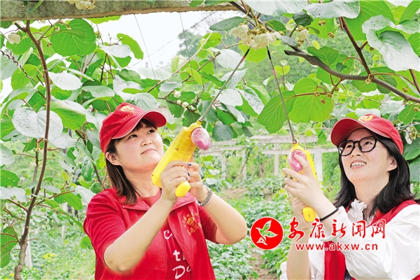 走進(jìn)觀音河鎮(zhèn)中坪村的田間地頭,暖陽在獼猴桃的枝葉間投下斑駁的影子。今年已經(jīng)75歲的村民鐘恩旺,正迎著微風(fēng)給獼猴桃人工授粉,看著眼前的滿枝繁花,老鐘樂的合不攏嘴,“今年花開的好,看這樣子,今年估計(jì)能收獲2000多斤,賺一萬多元。”有錢賺,老鐘便不覺得辛苦,談起獼猴桃種植的事,更是立馬來了勁頭,“等授了粉就要開始抹芽、后面還要疏果、施肥,我這個(gè)枝條綁的不是很好,這兩天還要重新縷一下。”在觀音河鎮(zhèn),像老鐘這樣掌握了獼猴桃種植技術(shù),依托獼猴桃產(chǎn)業(yè)實(shí)現(xiàn)增收的村民還有很多。全鎮(zhèn)7個(gè)村,有6個(gè)村都將獼猴桃作為主導(dǎo)產(chǎn)業(yè)在發(fā)展,但在2017年之前,整個(gè)觀音河鎮(zhèn),卻并無一人專門種植過這種水果。從對種植獼猴桃一無所知到掌握技術(shù)要點(diǎn),村民學(xué)到新技術(shù)的背后,都是因?yàn)殒?zhèn)黨委、政府對獼猴桃產(chǎn)業(yè)的重視。