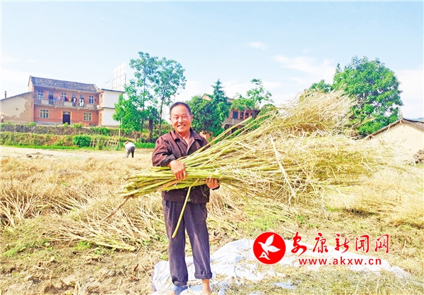 “今年的油菜長勢很好,油菜籽顆粒飽滿成色好,相比去年來每畝應該能增產(chǎn)40公斤左右,趁著這兩天的好天氣趕緊收割晾曬。”楊家壩村農(nóng)民劉定保一邊揮動著手中的鐮刀,一邊和鄰田的村民交流著。