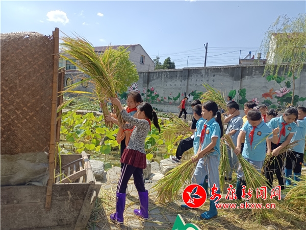 “同學(xué)們,你們看那一串串飽滿的稻穗掛在枝頭,長(zhǎng)得多喜人吶!現(xiàn)在我們要去收獲自己辛勤耕耘的勞動(dòng)果實(shí)了!大家要認(rèn)真學(xué)習(xí)怎樣割稻子,打稻谷,聽(tīng)從指揮,注意安全……”“老師,我要參與,我不怕累。”“我去年就學(xué)會(huì)了割稻子,今年我要學(xué)會(huì)打稻谷!”“我在電視上見(jiàn)過(guò),這個(gè)打谷子的工具歷史可悠久了。”