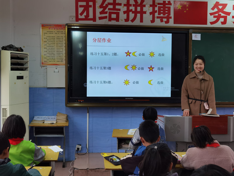 作為“雙減”的重要工作之一,漢陰縣各學(xué)校按照《關(guān)于進(jìn)一步加強(qiáng)學(xué)校作業(yè)管理的通知》要求,以加強(qiáng)作業(yè)管理為抓手,健全作業(yè)管理機(jī)制,分類明確作業(yè)總量,提高作業(yè)設(shè)計(jì)質(zhì)量。按照備課組設(shè)計(jì)、學(xué)科組審核、年級(jí)組統(tǒng)籌、班集體公示的流程,審核公示學(xué)生作業(yè),確保各年級(jí)作業(yè)數(shù)量和質(zhì)量符合“雙減”要求。各中小學(xué)根據(jù)學(xué)生實(shí)際,實(shí)施學(xué)生分層、作業(yè)分層和評(píng)價(jià)分層的“三步三環(huán)”作業(yè)分層管理辦法。按照三個(gè)不同層級(jí)的學(xué)生,科學(xué)設(shè)計(jì)與其能力范圍相符的基礎(chǔ)鞏固題、能力提升題、思維拓展題,教師依據(jù)學(xué)生層次和作業(yè)完成情況綜合考量,進(jìn)行不同層次的激勵(lì)性評(píng)價(jià)。作業(yè)分層管理,解決了學(xué)困生“吃得了”,優(yōu)等生“吃得飽”的問題,讓每個(gè)學(xué)生在學(xué)習(xí)過程中獲得成就感,從而變得更自信、更陽光,并以此促進(jìn)教師的專業(yè)成長(zhǎng)和職業(yè)幸福感。