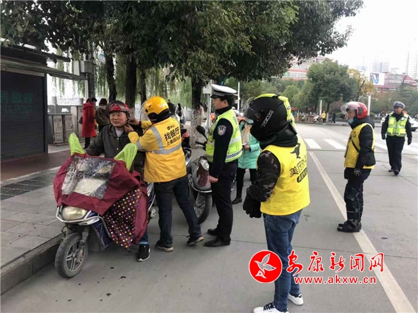 漢陰公安交管大隊聯(lián)合外賣企業(yè)開展“一盔一帶”聯(lián)合勸導活動