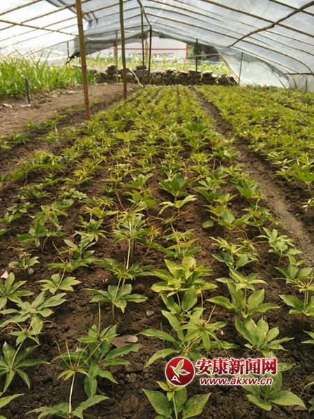 說(shuō)到蔣家關(guān)的白芨,我很快想到了一個(gè)熟悉的名字“王富國(guó)”,在《陜西日?qǐng)?bào)》和《安康日?qǐng)?bào)》多次看到過(guò)他“兩分地收入10萬(wàn)元”的相關(guān)報(bào)道,今年他還當(dāng)選了安康市第四屆人大代表。“這就是王富國(guó)家”,伍支書(shū)指著面前三間兩層還未粉刷的小洋樓向我們介紹。他的房前屋后都是塑料大棚,我們?cè)诖笈锢镆?jiàn)到了王富國(guó),今年40多歲,消瘦的國(guó)字臉上那雙睿智的雙眼顯得與眾不同。大棚里密密麻麻的白芨瘋長(zhǎng)著,緊挨著的一個(gè)棚里,布滿了“七葉一枝花”小苗,看到我們對(duì)白芨很有興趣,他便如數(shù)家珍地諞了起來(lái)。