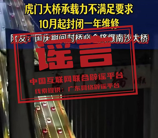 謠言:廣東虎門大橋10月起封閉維修?Y34安康新聞網(wǎng)