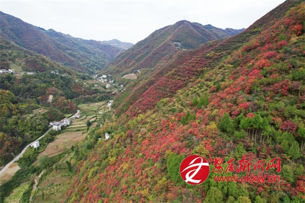 初冬時(shí)節(jié),地處秦嶺南麓的漢濱區(qū)早陽鎮(zhèn)境內(nèi),滿山的紅葉把山村裝扮得美如一幅畫,引得眾多游客和市民來這里賞紅葉、觀美景,盡享生態(tài)之美。圖為無人機(jī)視角下的早陽紅葉美景。 (通訊員 周濤) Kmu安康新聞網(wǎng)